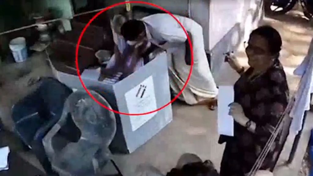 ദേവകിയുടെ വോട്ട് സിപിഎം നേതാവ് ഗണേശന് രേഖപ്പെടുത്തുന്ന സിസിടിവി ദൃശ്യം പുറത്ത്. തുടർന്ന് പോളിങ് ഉദ്യേഗസ്ഥർക്കെതിരെ നടപടി സ്വീകരിച്ചു.