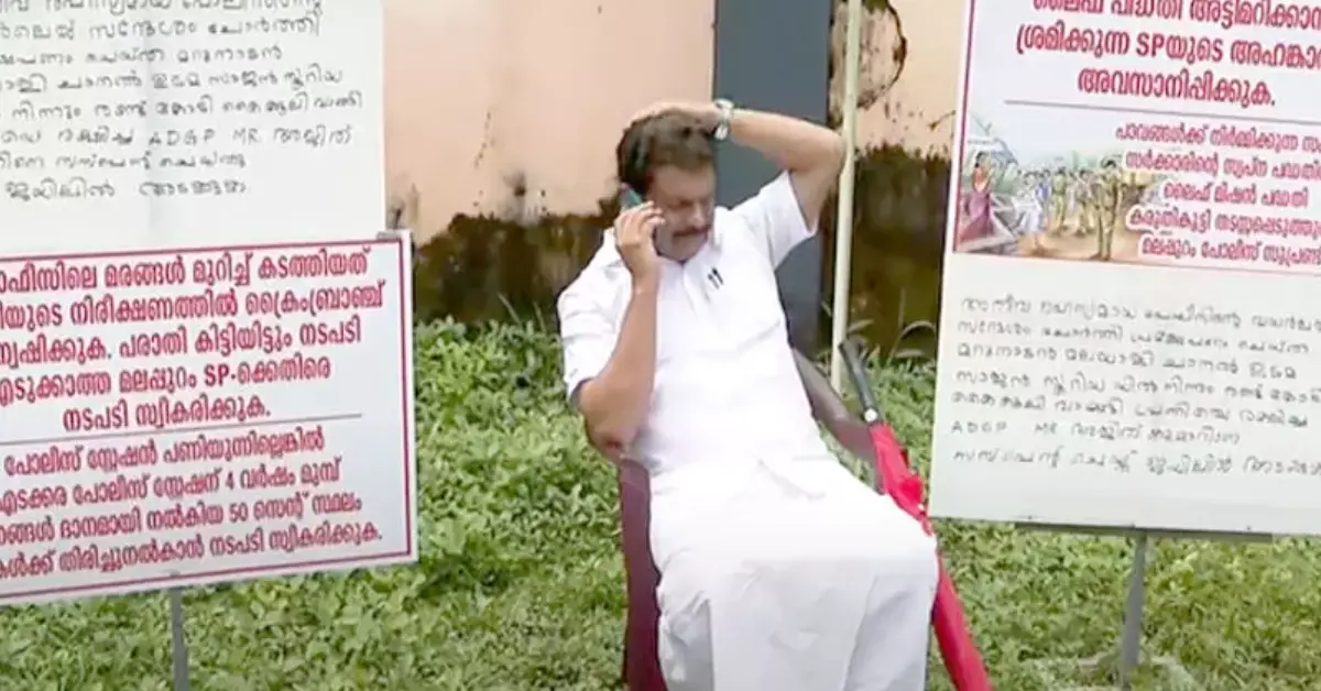 എസ്പി എസ്.ശശിധരന്റെ ഔദ്യോഗിക വസതിയ്ക്കു മുന്നിൽ കുത്തിയിരുപ്പ് സമരവുമായി പി.വി. അന്വര്എസ്പി ഓഫിസിലെ മരങ്ങൾ മുറിച്ചു കടത്തിയതു കോടതിയുടെ നിരീക്ഷണത്തിൽ ക്രൈംബ്രാഞ്ച് അന്വേഷിക്കണമെന്നാവശ്യപെട്ടാണ് സമരം.