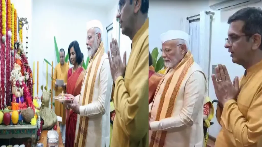 സുപ്രീം കോടതി ചീഫ് ജസ്റ്റിസ്റ്റ് ഡി വൈ ചന്ദ്രചൂടിന്റെ വസതിയിലെ ഗണപതി പൂജയിൽ പങ്കെടുത്തു പ്രധാന മന്ത്രി നരേന്ദ്ര മോദി. കഴിഞ്ഞ ദിവസമായിരുന്നു പ്രധാന മന്ത്രി ഈ ഗണപതി പൂജയിൽ പങ്കെടുത്തത്. ചീ ഫ് ജസ്റ്റിസിനും ,ഭാര്യ കല്പനാ ദാസിനുമൊപ്പമാണ് പ്രധാന മന്ത്രി പൂജ യിൽ പങ്കെടുത്തത്. എന്നാൽ പ്രധാനമന്ത്രിയുടെ ചീഫ് ജസ്റ്റിസ്റ്റിന്റെ വസതിയിൽ സന്ദർശന൦ വലിയ വിവാദത്തിൽ.