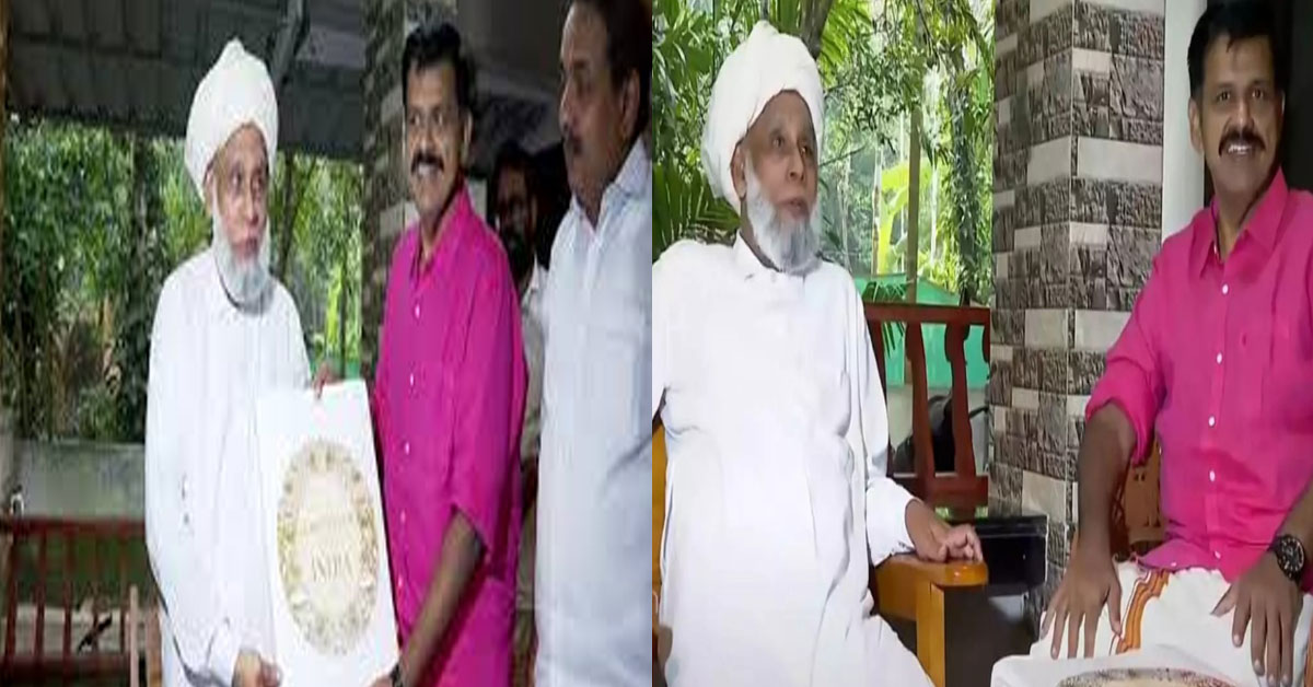 ജിഫ്രി മുത്തുക്കോയ തങ്ങളുമായി കൂടിക്കാഴ്ച നടത്തി സന്ദീപ് വാര്യർ, ഭരണഘടനയുടെ കയ്യെഴുത്ത് പ്രതി സന്ദീപ് തങ്ങൾക്ക് കൈമാറി